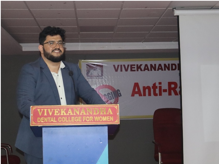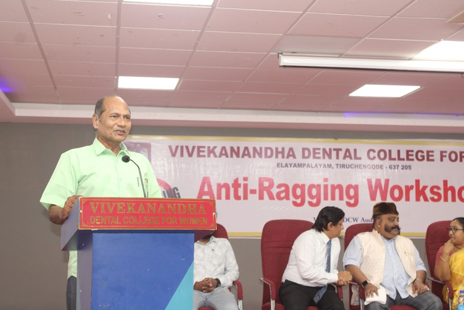 Anti-Ragging committee organized an Anti-Ragging Workshop in Vivekanandha Dental College for Women on January 3, 2026 with Dr. Nidarsh D. Hegde, Member, Dental Council of India, as Chief Guest, along with legal and academic experts, emphasizing the prevention and legal consequences of ragging and reinforcing the college’s commitment to a safe, ragging-free campus.