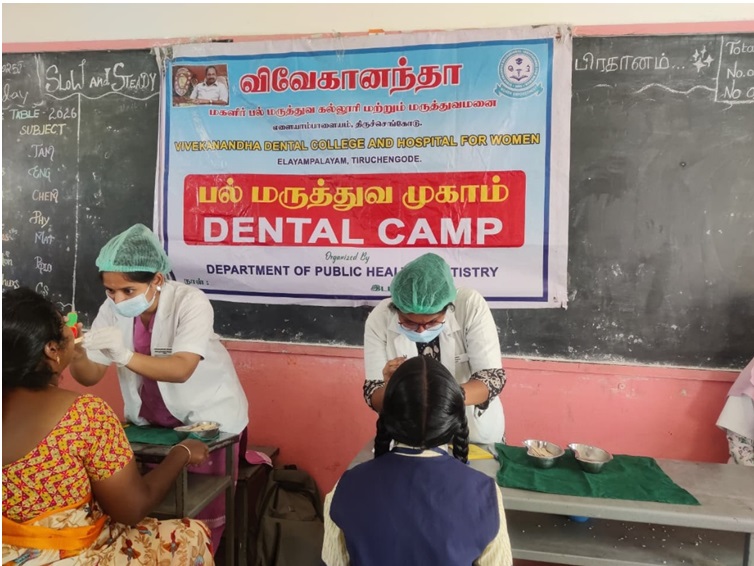 Vivekanandha Dental College for Women organized an Oral Health Awareness and Screening Camp at Shri Renga Vidyalaya Matriculation Higher Secondary School,Rayarapalayam on January 5, 2026.The camp focused on oral hygiene education, preventive care, and screening, benefiting school children and the local community. A total of 113 patients were screened, with 106 referred for further treatment, reinforcing the importance of oral health in overall well-being.