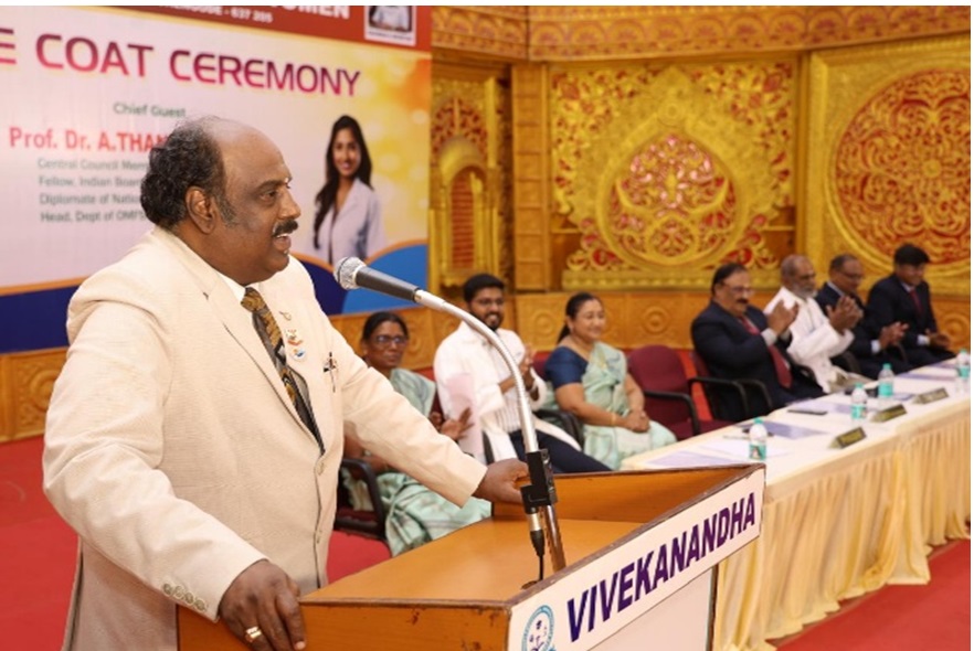 The White Coat Ceremony for the BDS 2025–2026 Batch was held on 14th February 2026. The Chief Guest, Prof. Dr. A. Thangavelu, a renowned Oral and Maxillofacial Surgeon, Central Council Member of the Indian Dental Association, and Head of the Department of OMFS, Government Dental College & Hospital, Cuddalore, ceremoniously presented the white coats to the budding dentist.It was a proud and emotional moment for parents to witness their children step into a noble healthcare career