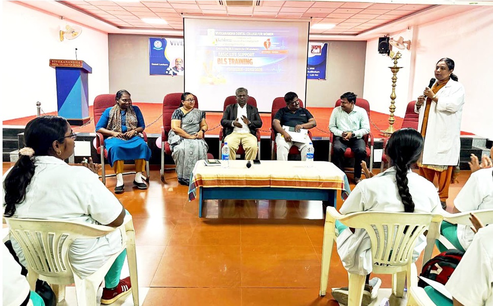 Vivekanandha Dental College for Women conducted a two-day CPR Training Programme on 10th and 11th February 2026 in collaboration with Krishnaa Institute of Skill Development Center. A total of 96 II BDS students received hands-on training in CPR, Basic Life Support, and AED usage. All participants were certified, enhancing their preparedness to handle real-life medical emergencies with confidence health.
